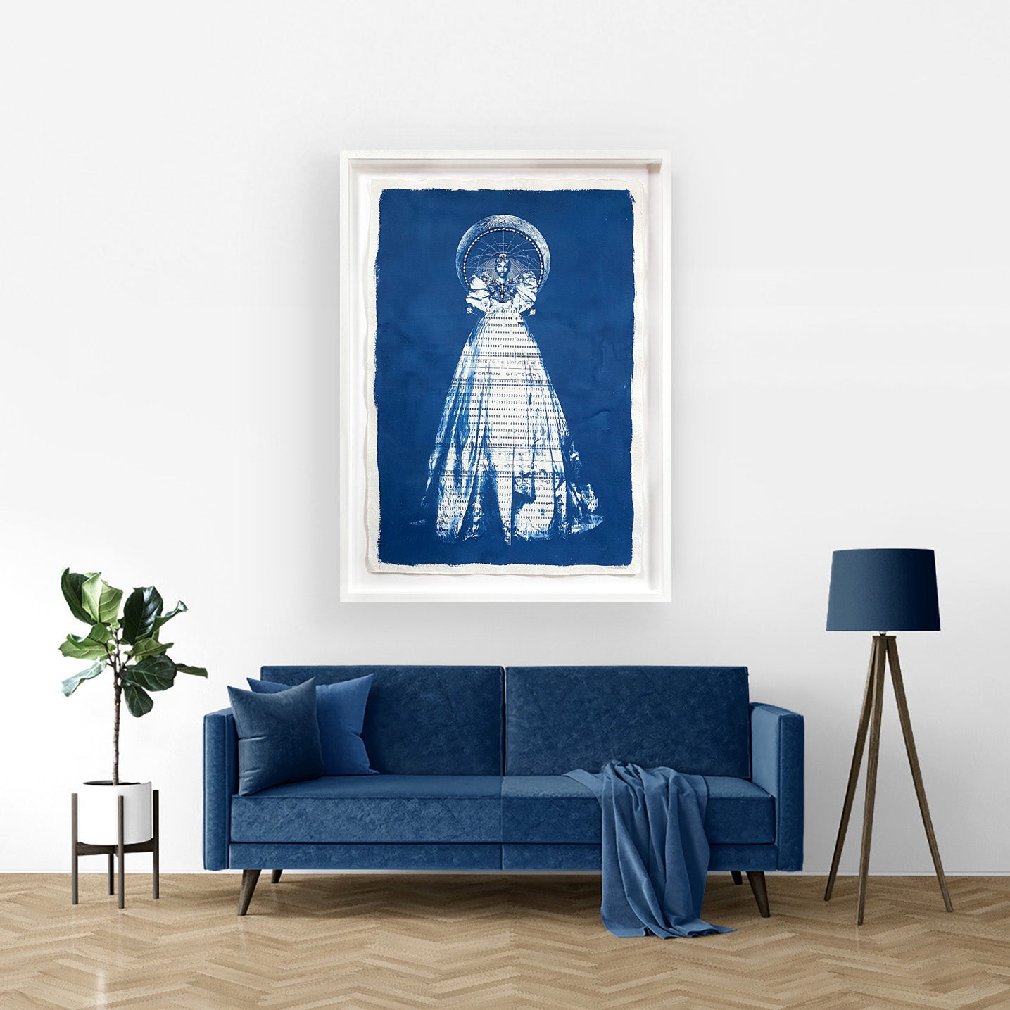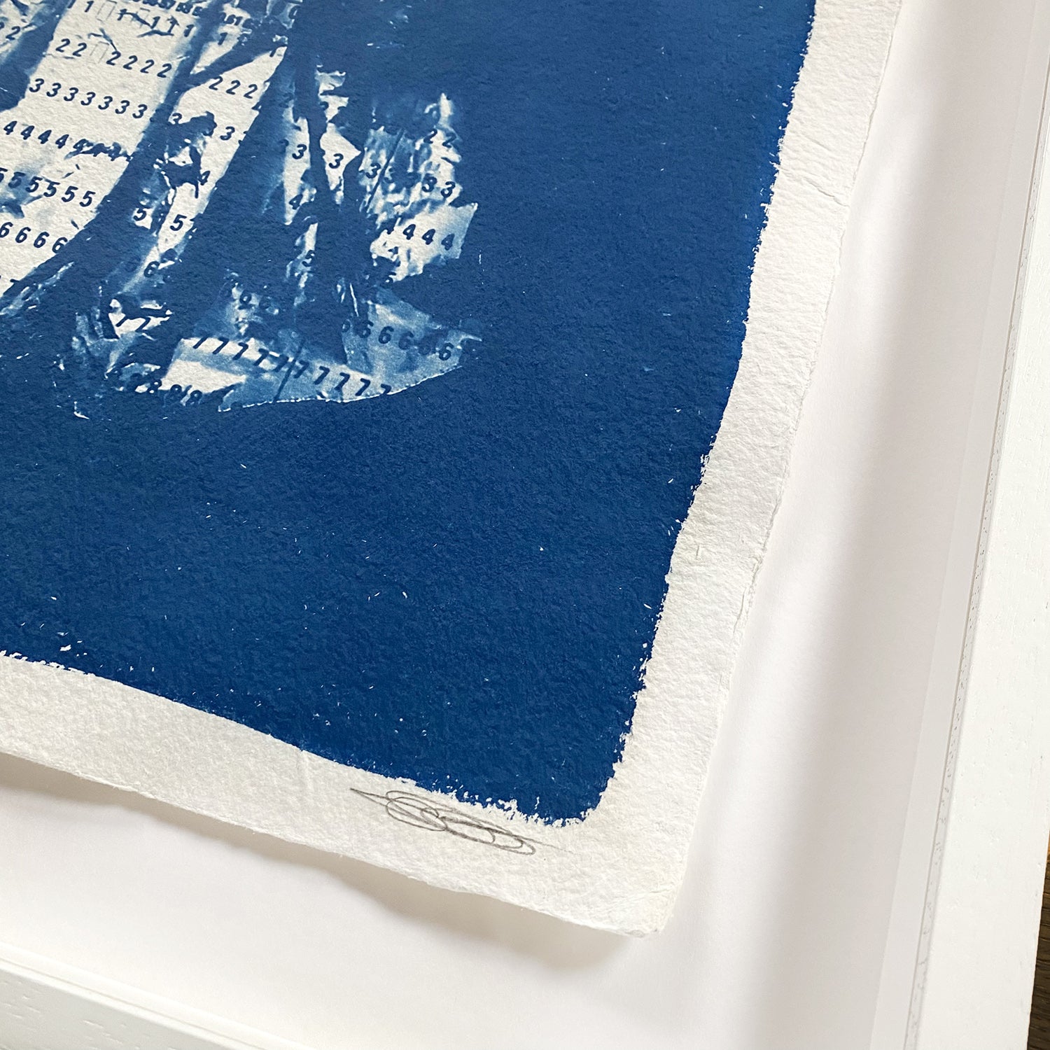 We use float mounting for all of our framed cyanotypes. The artwork floats above a snow-white 8001 mount board, to showcase the paper texture and deckled edging.