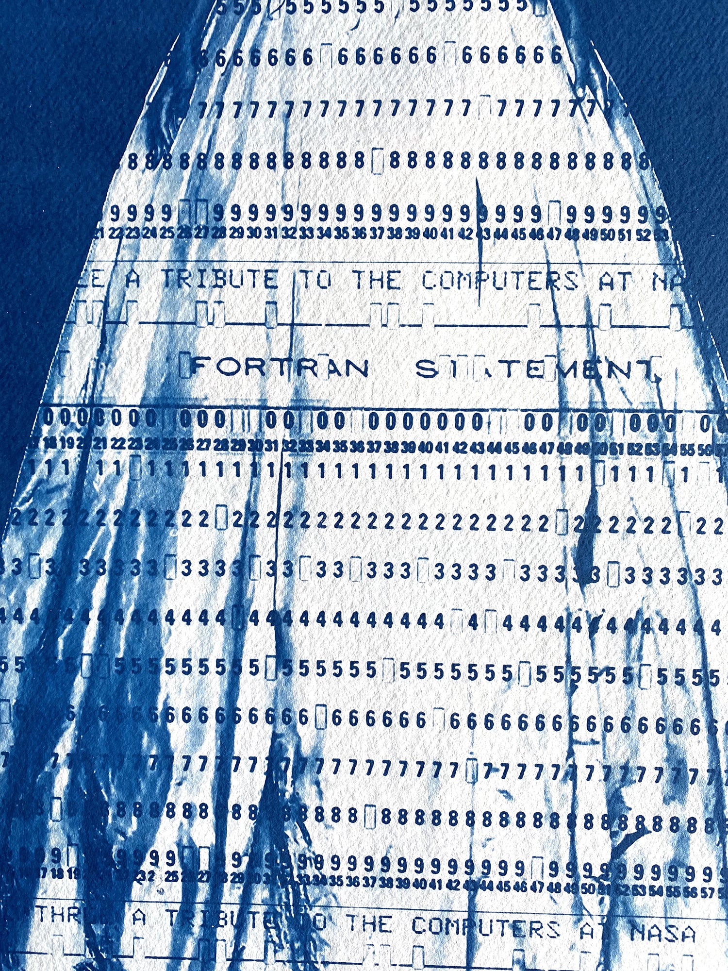This artwork is inspired by American computer programmer and mathematician Dorothy Vaughan. Making significant contributions to the early U.S. space program, she was also the first Black American supervisor at NACA. A role she would continue to hold up to and beyond its merger with NASA, spending her entire career helping America stay ahead of the curve during the space race. Dorothy Vaughan became an expert FORTRAN programmer, and she also contributed to the Scout Launch Vehicle Program.