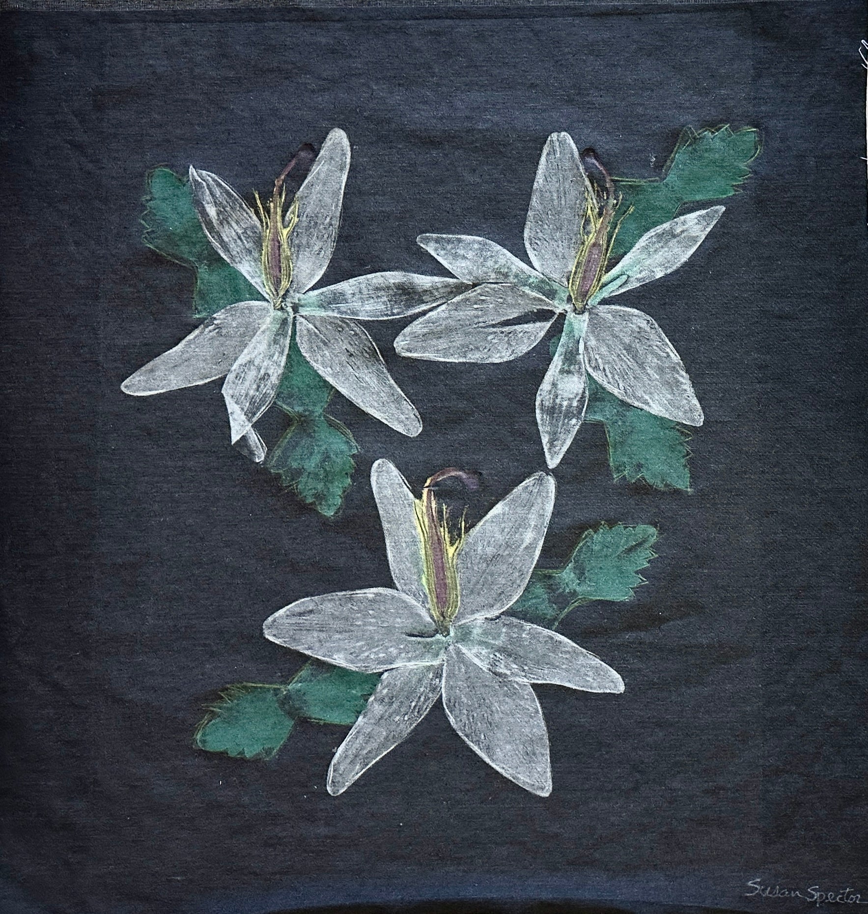 Original mixed media monoprint on denim
