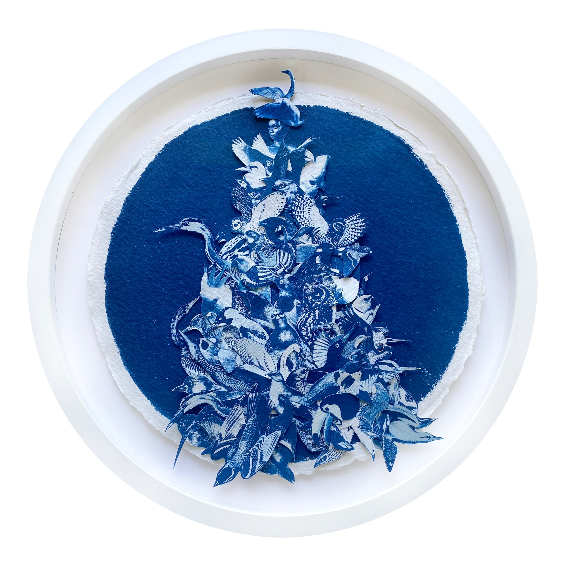 Materials | Cyanotype, paper cut layers on handmade paper 15.2in frame diameter x 1.2in frame depth