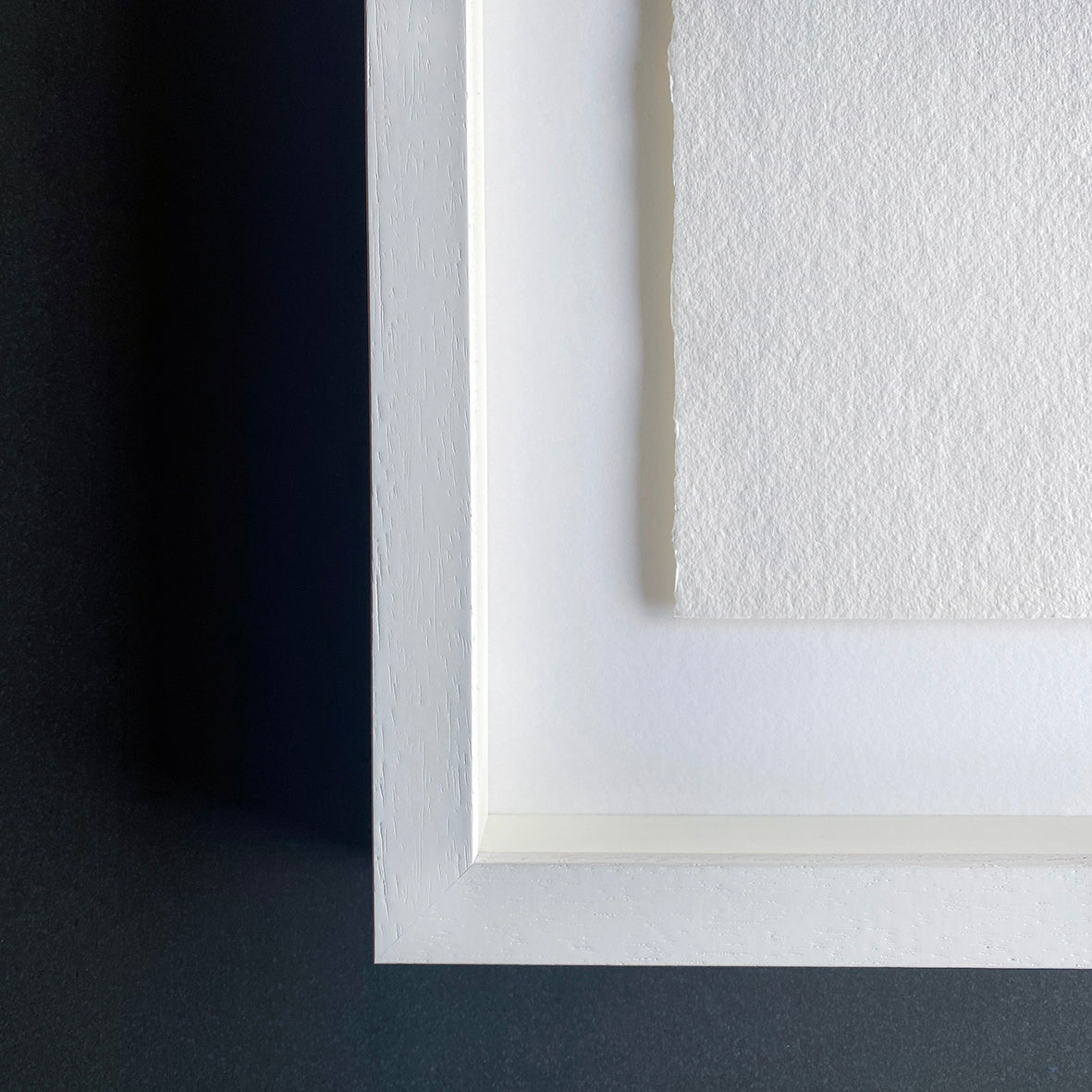 snow-white 8001 mount board, to showcase the paper texture and deckled edging. All materials are museum grade and archival.