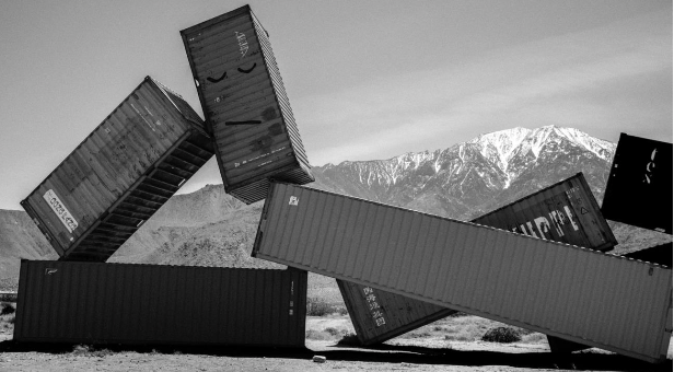 A precarious balance of industry and nature, Stacked Fate captures a striking arrangement of shipping containers against the backdrop of towering, snow-capped mountains. Found off the road en route to Joshua Tree, this structure feels both accidental and intentional—a testament to human imposition on the landscape and the inevitable forces of gravity and time. The graffiti on the top container adds an almost human-like expression, as if the structure itself is reacting to its own instability. In this moment, the scene becomes a metaphor for resilience, imbalance, and the tension between control and chaos.