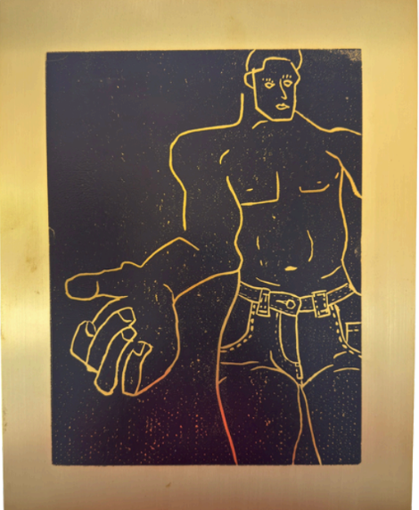 Linoleum Cut Relief Printed on Brass