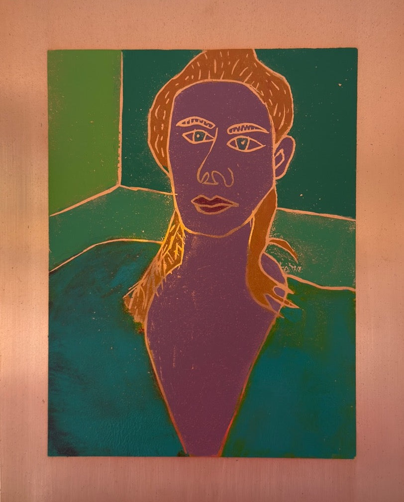 Artwork - Live 20-minute model poses hand carved into pieces of linoleum. The linoleum was then inked up with printers ink and then relief printed, run through a large press, and printed onto metal.