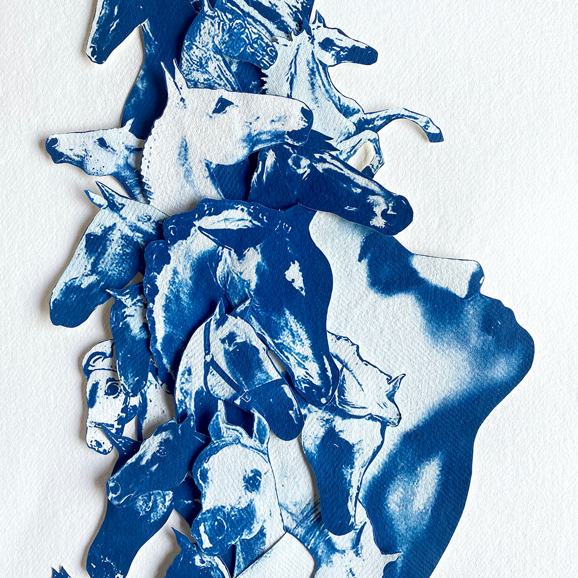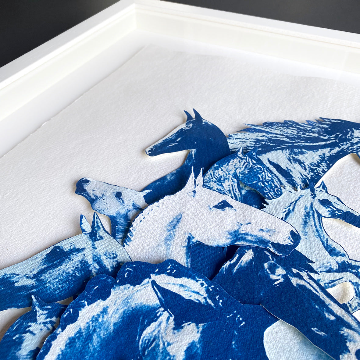 Materials | Cyanotype, handmade paper, papercut collage 21.85 in x 30.5in x 2.17in (frame depth)